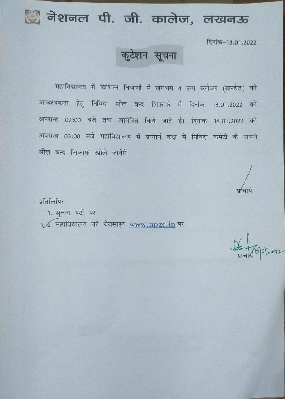 Tender Notice: Room Blower