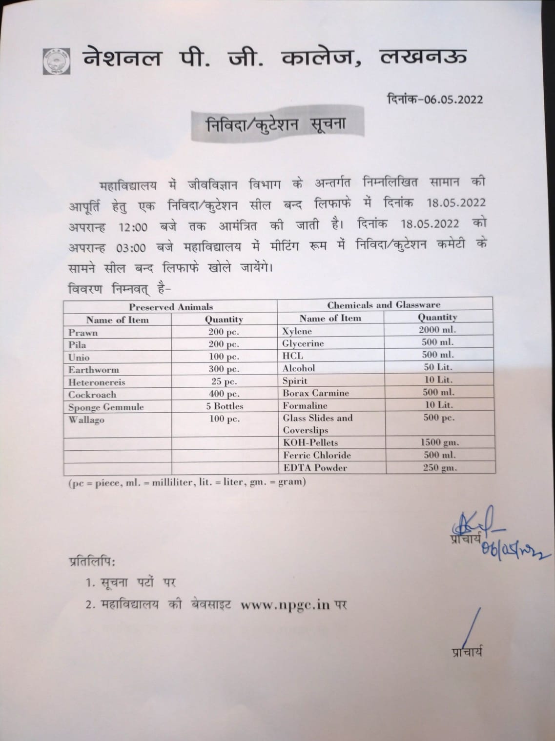 Requirement of Chemicals and Equipments in Chemistry Lab