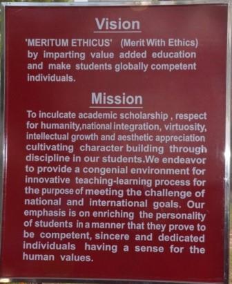 The motto of the college is maritum ethicus i.e. merit with ethics. Social, regional, territorial, geographical, racial and cultural boundaries no longer hold relevance in the present scenario. Merit in human beings without ethics turn him into a wild beast. Merit and ethics are the two pillars upon which the foundation of the academic programmes of the College rests. The academic programmes of the college have been designed to ensure dynamic, interactive, innovative methodologies of learning to enhance the academic accomplishments of the students. The college is committed to instill in the students a deep sense of ethics, which having amalgamated with their inner talents transforming them into ideal, dedicated, sincere and responsible citizens of the world.