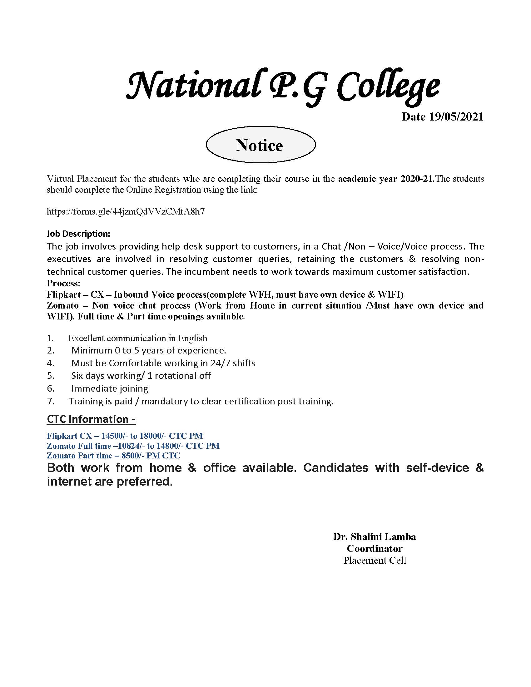 Placement Notice : Campus Recruitment Drive by CONCENTRIX