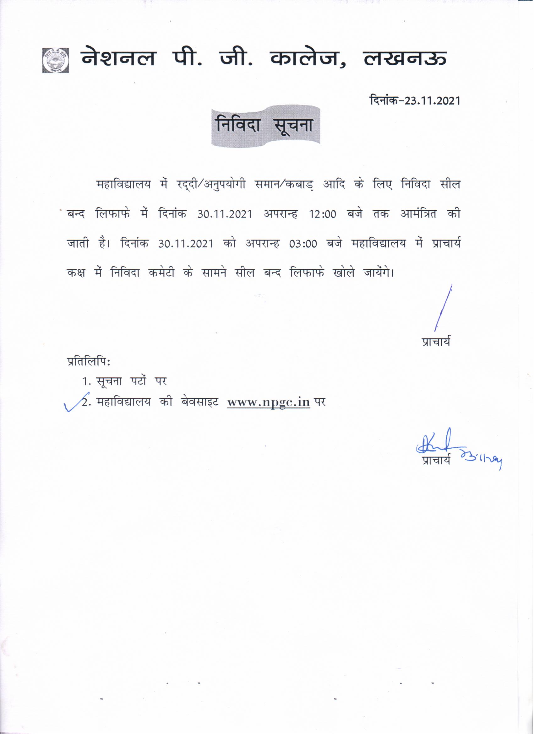 Tender Notice : Uniform Blazer for College Staff