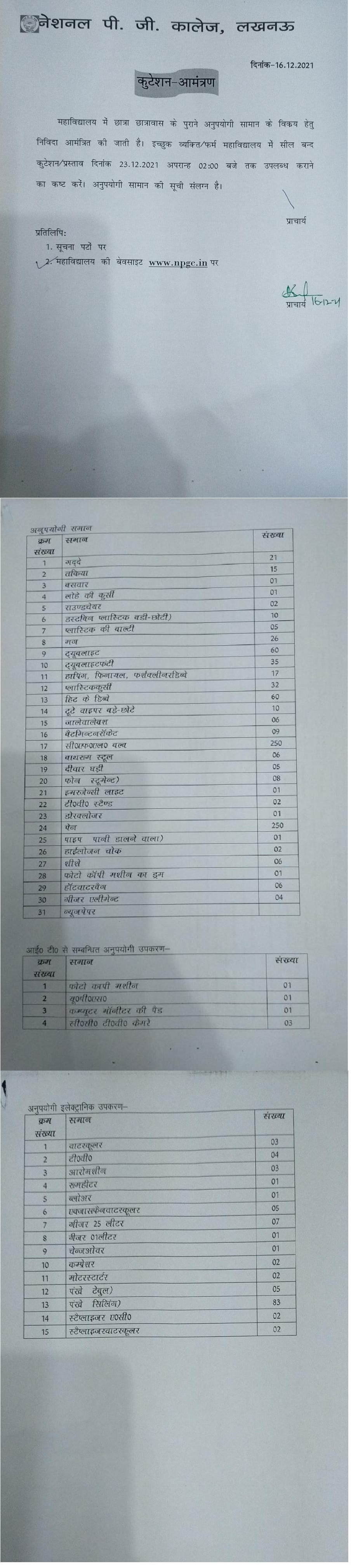 Requirement of Chemicals and Equipments in Chemistry Lab