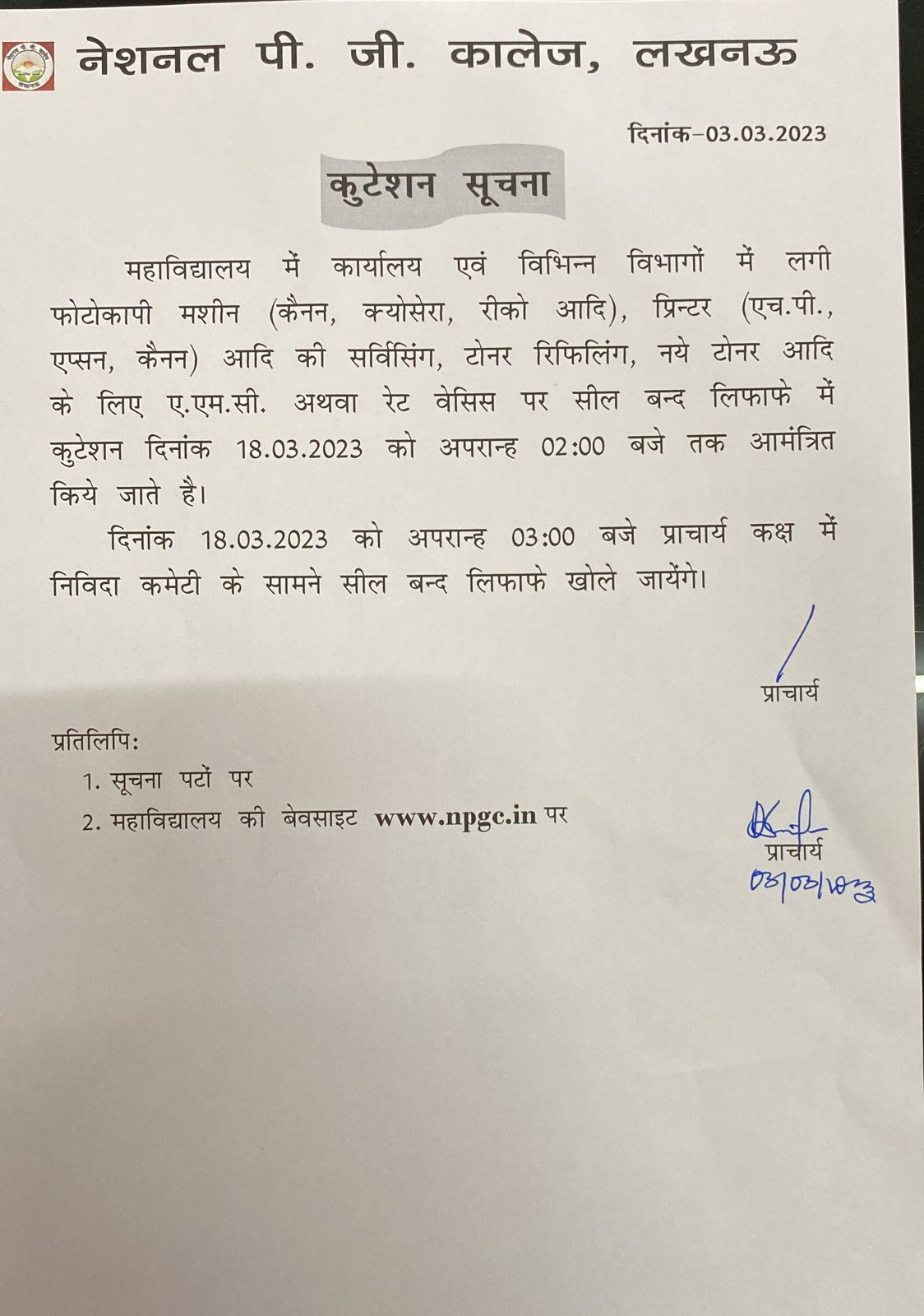 Tender Notice : Uniform Blazer for College Staff