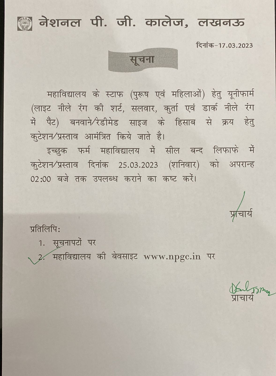 Tender Notice : Uniform Blazer for College Staff