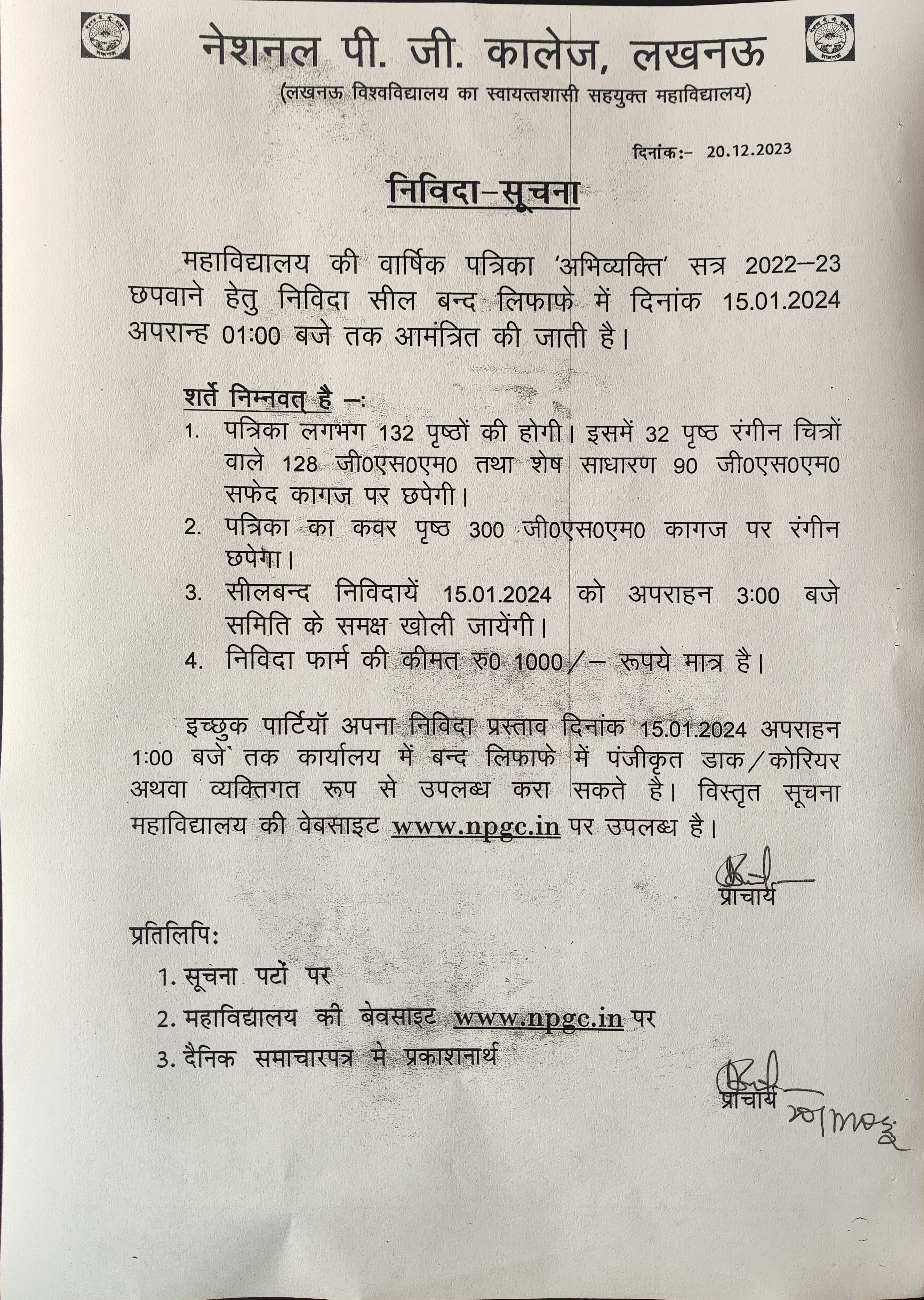 College Magazine Tender Notice for Printing & Supply