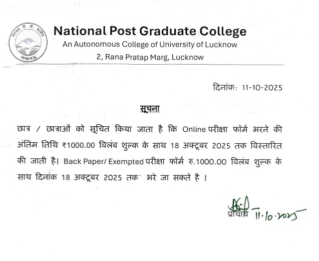 Examination Form Notice DEC-2025: Last Date Extended