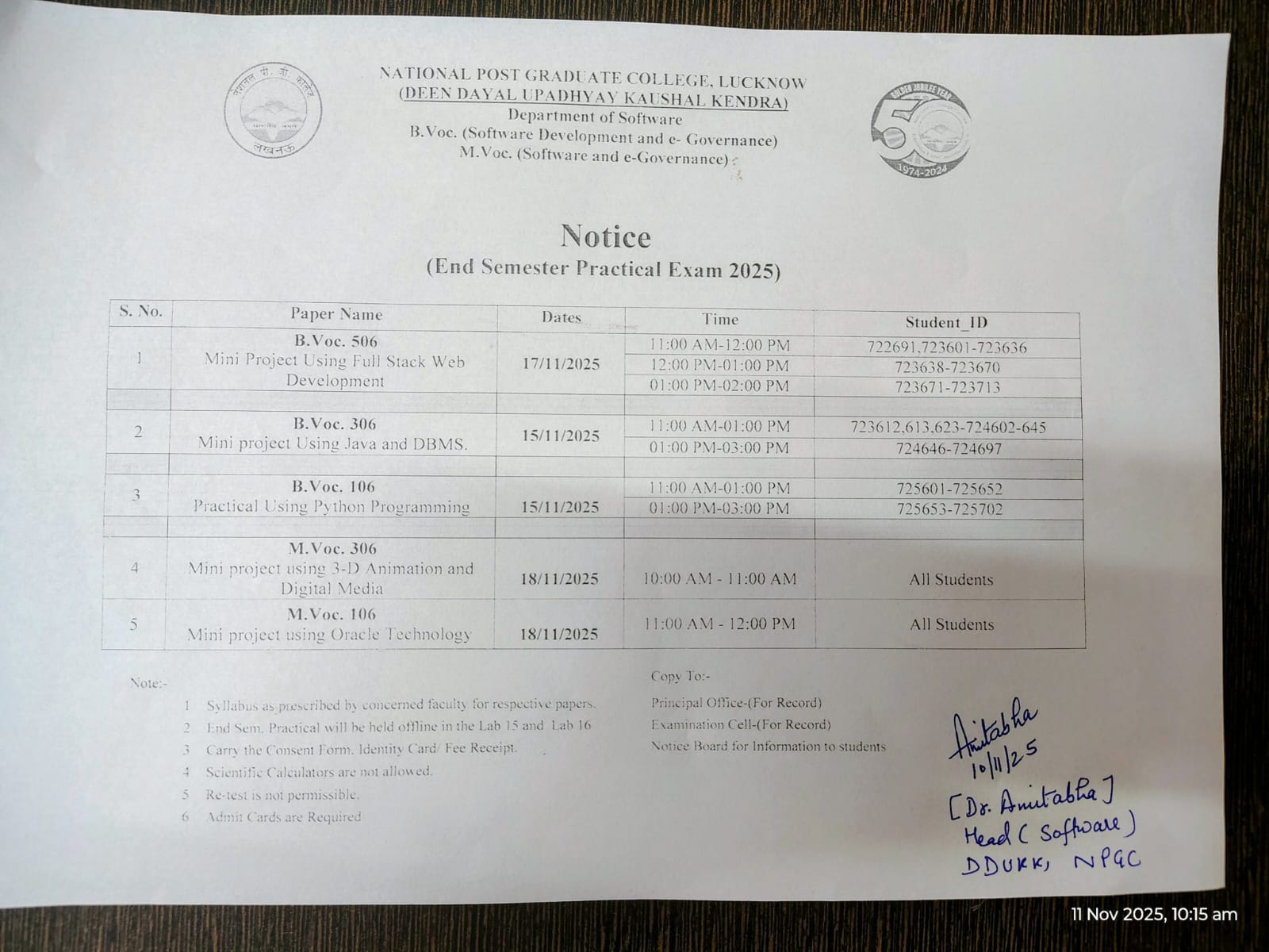 Practical Exam Notice department of Anthropology December - 2025
