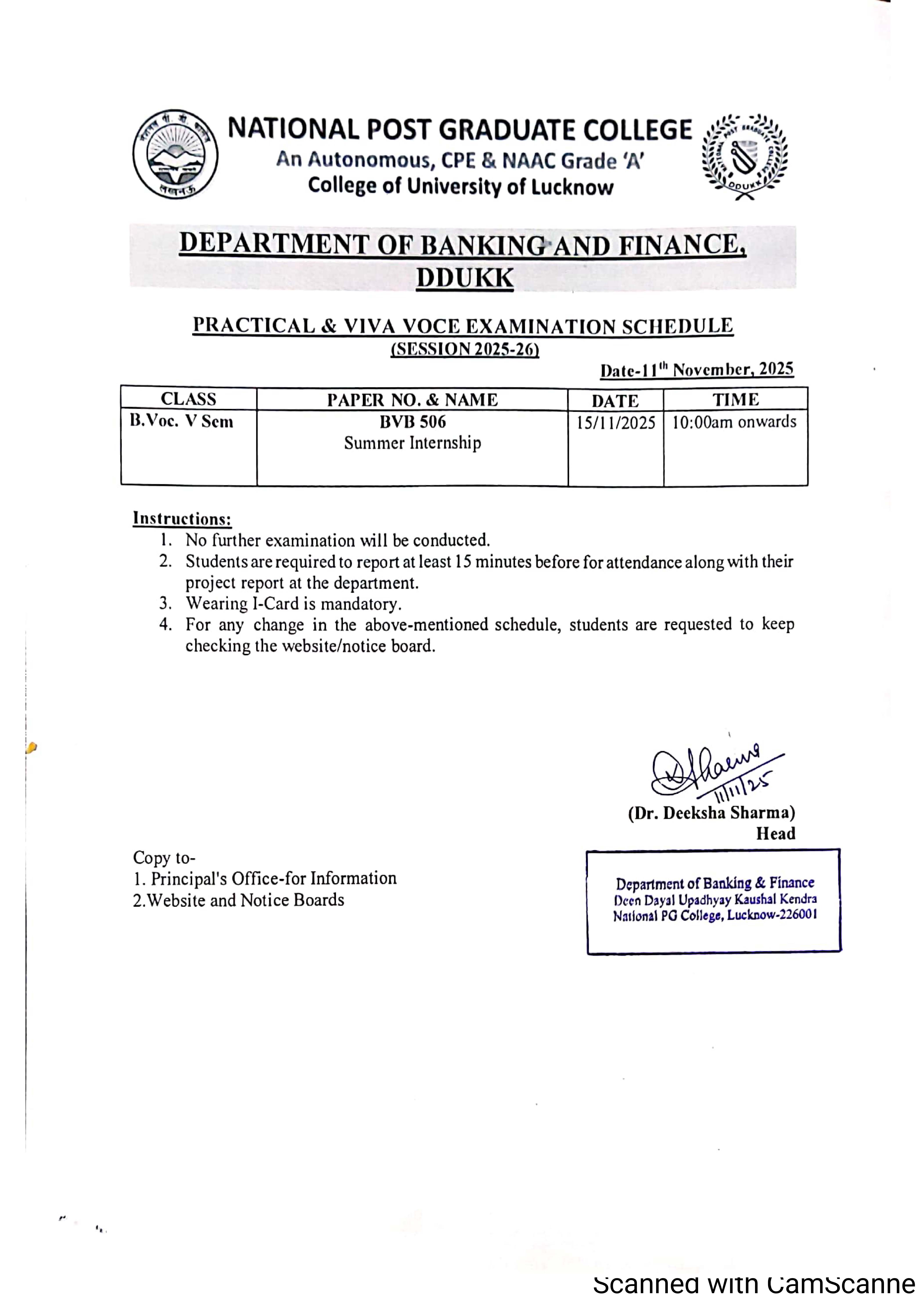 Practical Exam Notice department of Anthropology December - 2025