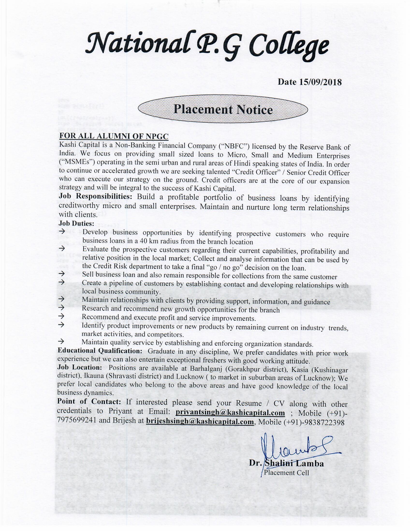 Placement Notice : Kashi Capital