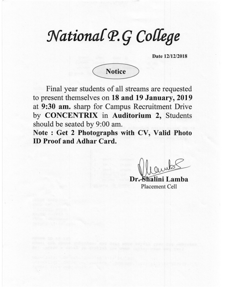 Placement Notice : Campus Recruitment Drive by CONCENTRIX