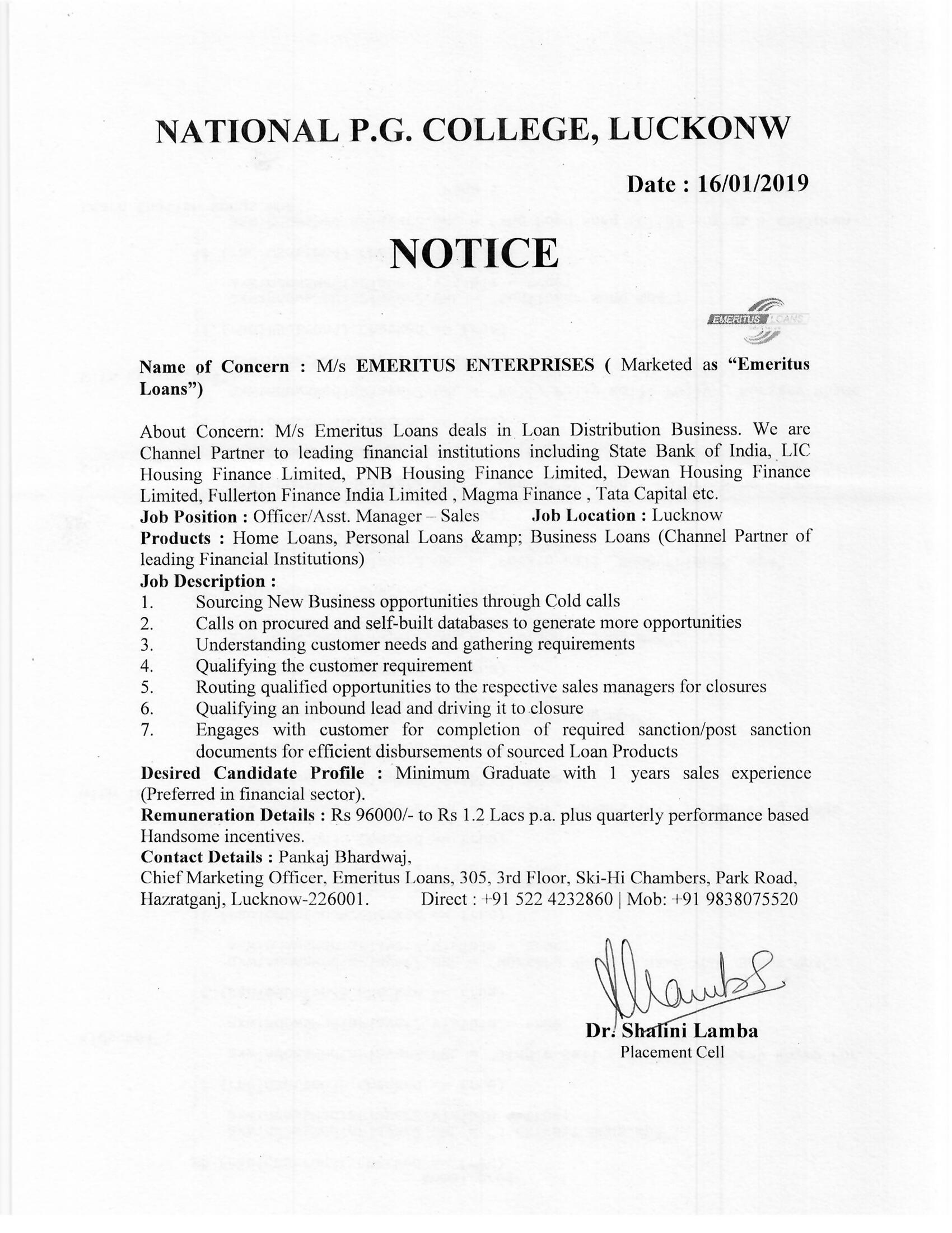 Placement Notice : Jaro Education